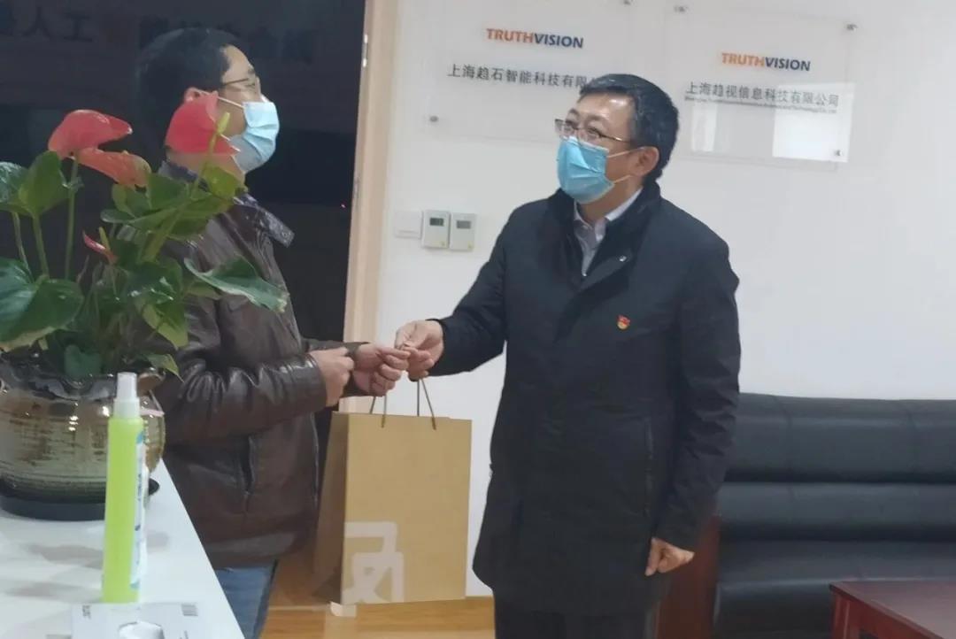 2月26日,上海市閔行區組織部副部長夏林領導一行蒞臨趨視科技進行節后慰問,并向趨視贈送了醫用口罩,用于緩解防疫抗疫期間公司的口罩緊缺狀況。